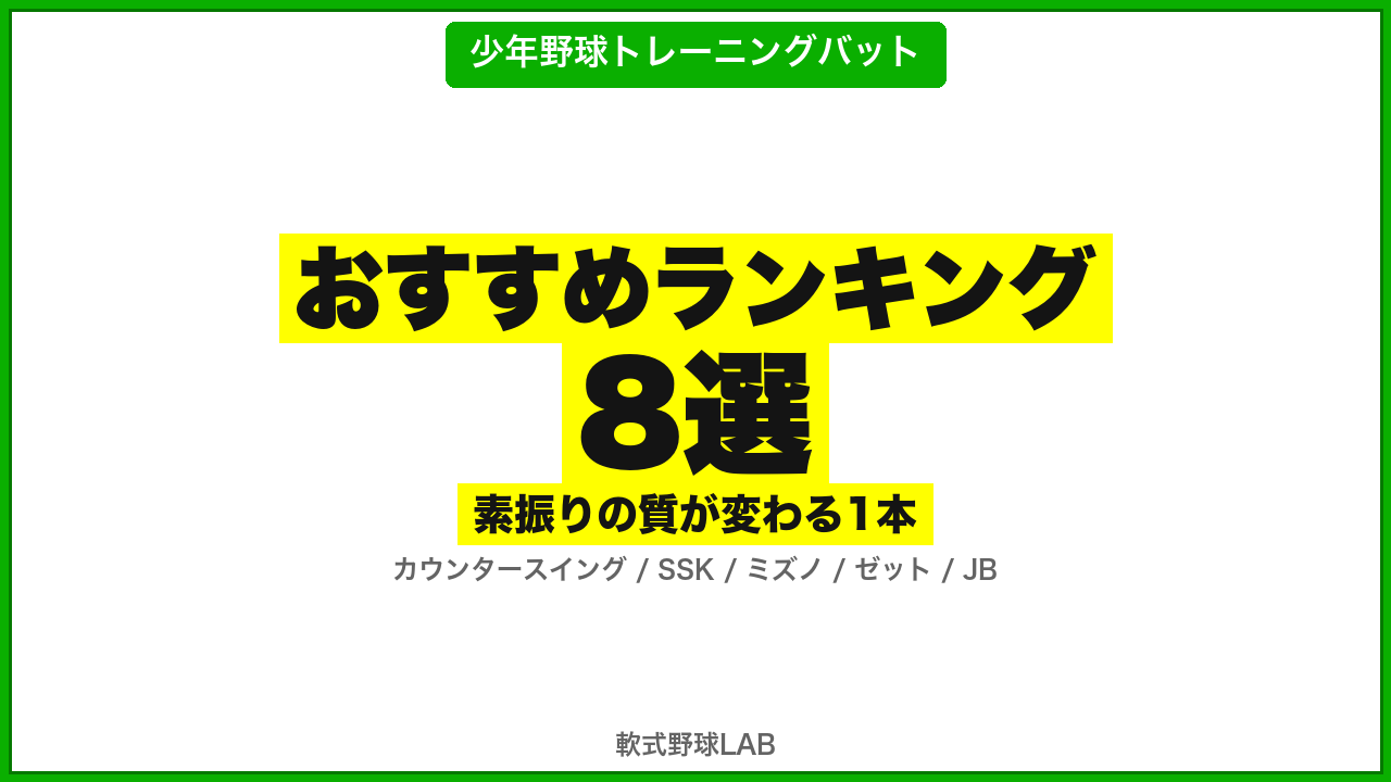 この記事では、少年野球のスイング改善に効くトレーニングバット8本を目的別にランキングします。